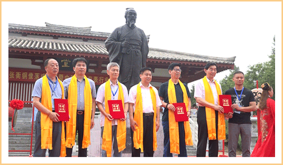 張衡(78年—139年),是我國東漢時期偉大的發(fā)明家,科學家,天文學家,是世界儀器儀表科學技術(shù)發(fā)展的先驅(qū),是漢都南陽的世界級地標性科技偉人。被后人譽為科圣。由于他的貢獻突出,聯(lián)合國天文組織將月球背面的一個環(huán)形山命名為“張衡環(huán)形山”,太陽系中的1802號小行星命名為“張衡星”。他不僅是南陽文化的重要資源,也是中國科學、文學、天文學、思想哲學、藝術(shù)學各界的重要文化資源。