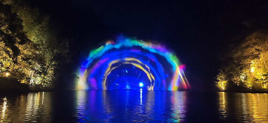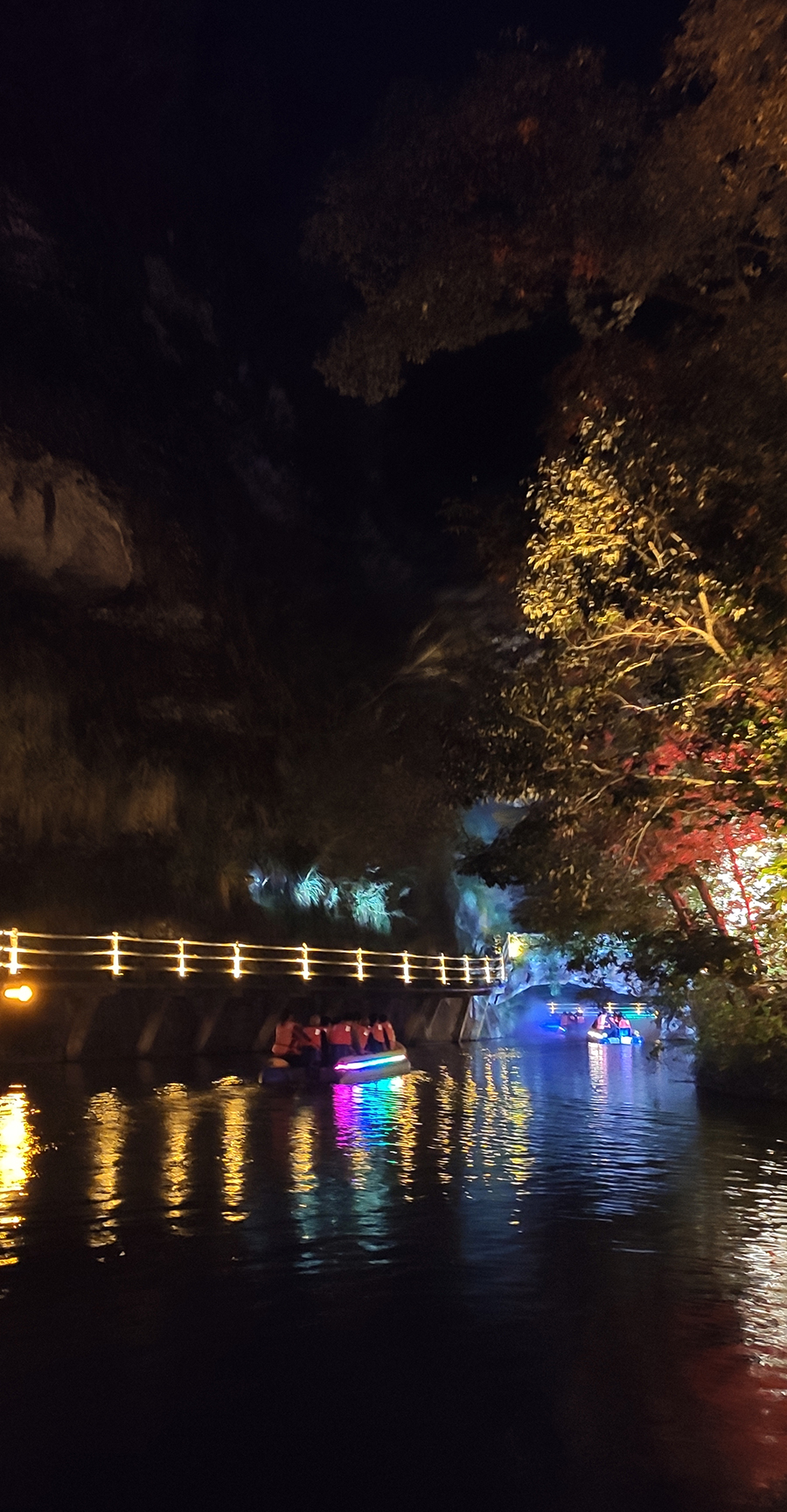 入夜,黨支部一行來(lái)到本次文旅最精彩的項(xiàng)目:“夜游九龍?zhí)?rdquo;。以“夜游九龍?zhí)叮o享夜的美”為主題的“行進(jìn)式”水上峽谷夜游景區(qū),利用現(xiàn)代化聲光技術(shù)與景區(qū)自然美景有機(jī)融合,讓您充分感受“詩(shī)意山水,光影幻境”。聽(tīng)蛙唱蟲(chóng)奏,觀月下仙境,月光映水,水波映月,加上臨水棧道邊笛聲陣陣......讓您真切的領(lǐng)會(huì)空靈、幽靜、夢(mèng)幻的別樣意境。一路的聲光風(fēng)景讓人目不暇接,如果不是身臨其境,絕對(duì)感受不到那光影與大自然結(jié)合產(chǎn)生的絕妙意境。