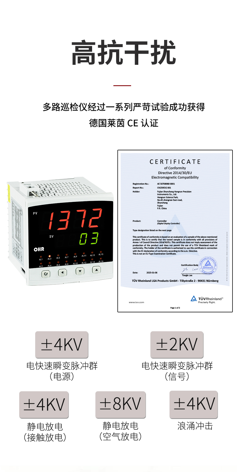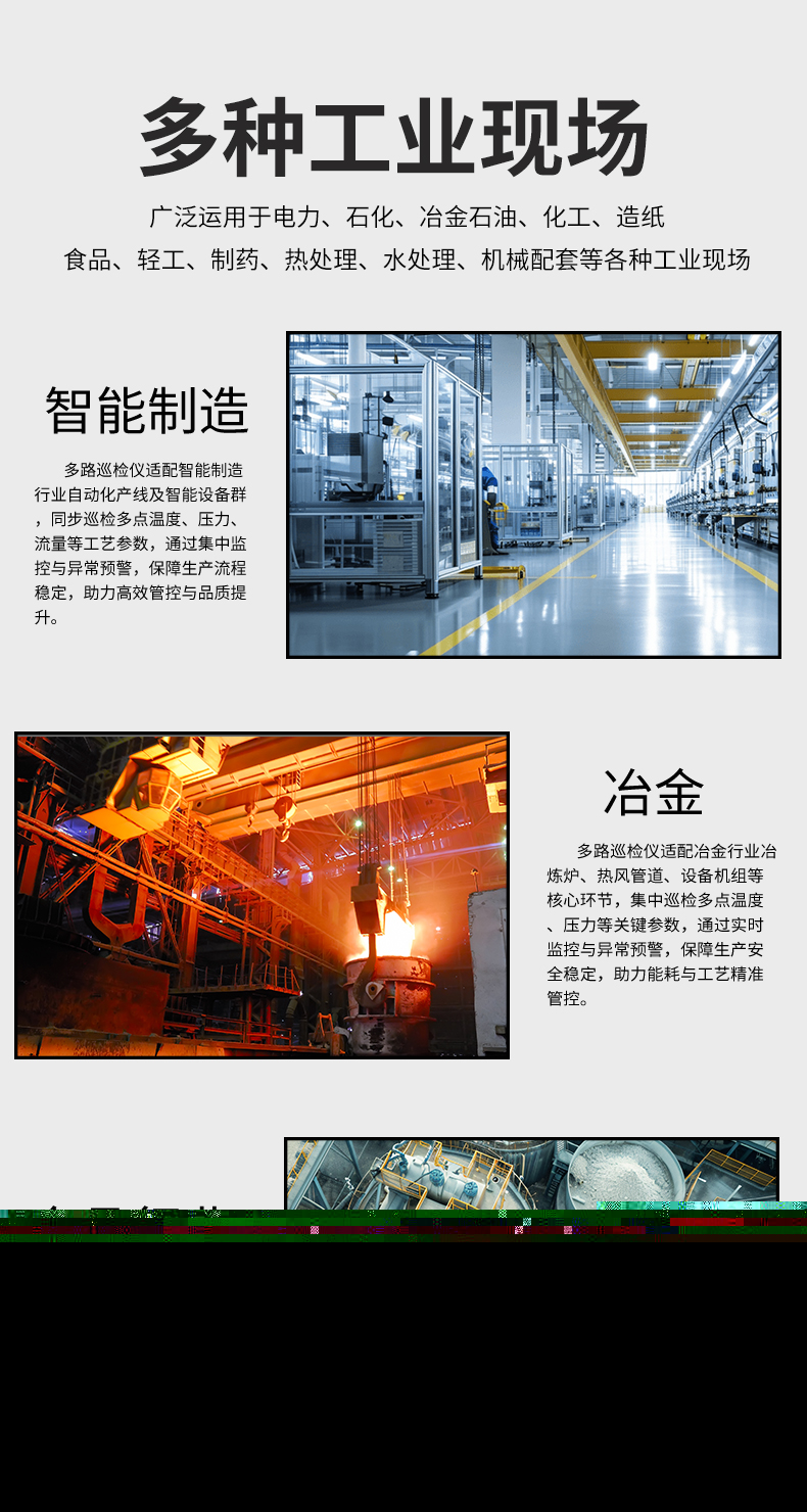 虹潤公司是專業生產多路溫度巡檢儀的國家專精特新“小巨人”企業,生產的多回路測量顯示控制儀,具有8路/16路測量通道,全切換信號輸入,多種輸出類型,高抗干擾,RS485/RS232通訊等特點。產品獲得巡回檢測顯示方法及裝置、儀表殼體等2項國家發明專利,主持起草工業過程控制系統用模擬輸入兩位或多位輸出儀表、物聯網智能溫度儀表通用技術條件等2項國家標準,以及通信系統多通道數據采集控制終端規范軍用標準,參與國際5G標準制定,取得多回路測量顯示控制儀等3項相關軟件著作權。產品廣泛應用于電力、石化、冶金、制藥、水處理、機械配套等各種工業現場。