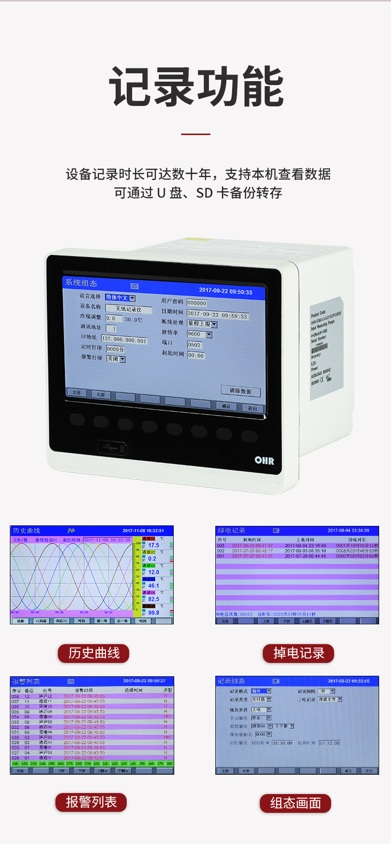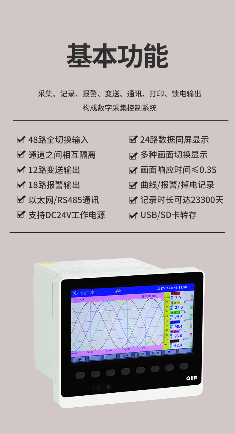 OHR-H700系列多路彩色數據采集無紙記錄儀
