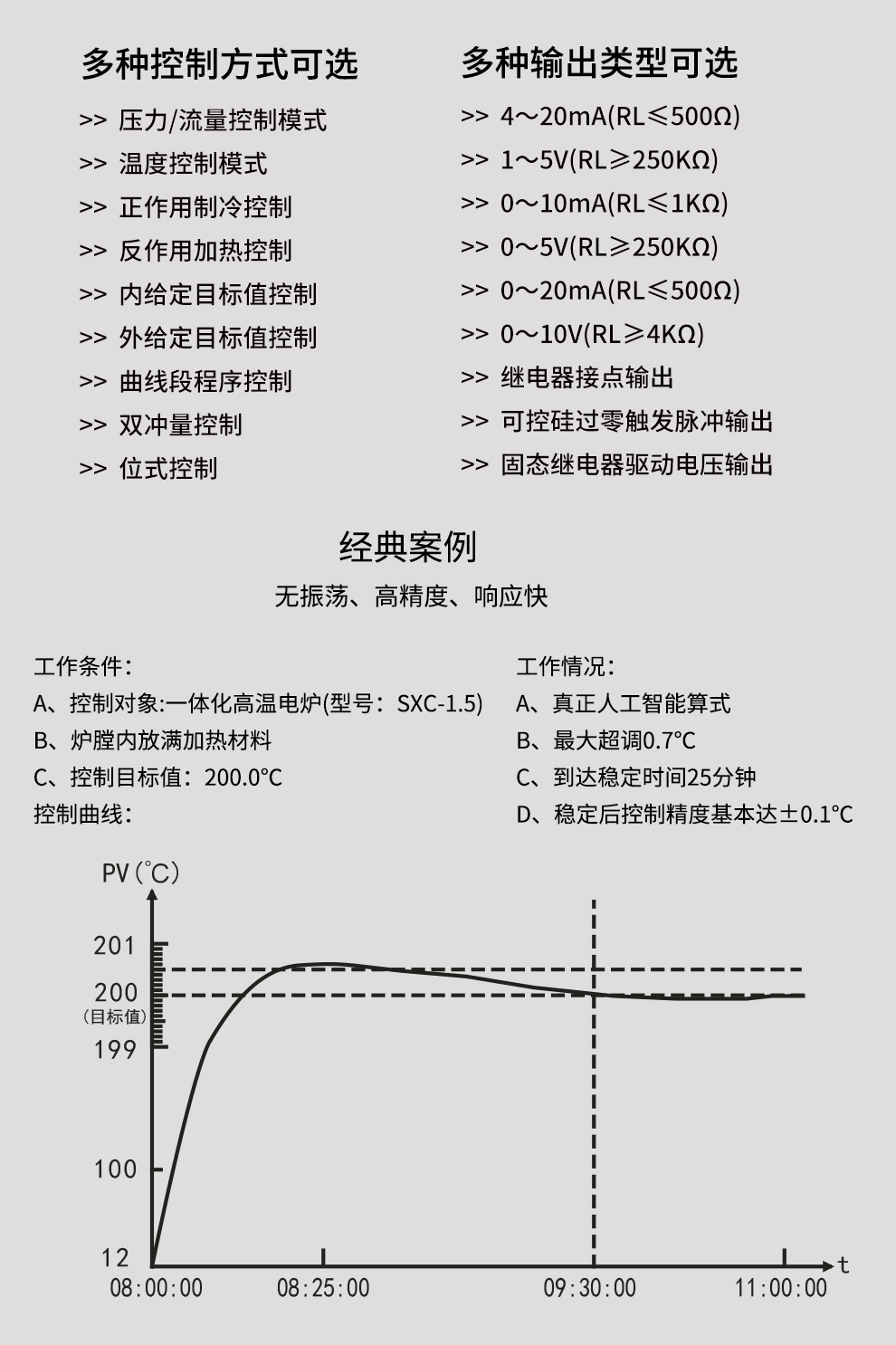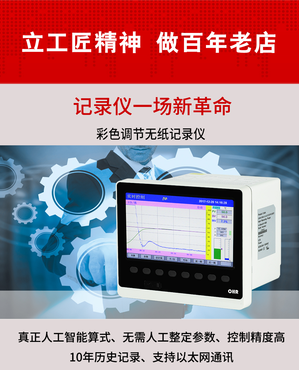 虹潤公司是專業(yè)生產(chǎn)溫控器的國家專精特新“小巨人”企業(yè)。生產(chǎn)的彩色調(diào)節(jié)無紙記錄儀,具有8路PID獨立控制,真正人工智能算式,無需人工整定參數(shù),控制精度達士0.1°C,支持以太網(wǎng)/RS485通訊輸出等特點。產(chǎn)品獲得智能化控制器、人工智能調(diào)節(jié)器及調(diào)節(jié)方法、模糊PID控制儀及控制方法、一種平板無紙記錄儀、巡回檢測顯示方法及裝置等5項國家發(fā)明專利,主持起草物聯(lián)網(wǎng)智能記錄儀表通用技術條件、物聯(lián)網(wǎng)智能溫度儀表通用技術條件、工業(yè)過程測量和控制系統(tǒng)用智能調(diào)節(jié)器等3項國家標準,通信系統(tǒng)多通道數(shù)據(jù)采集控制終端規(guī)范軍用標準,以及空間數(shù)據(jù)與信息數(shù)據(jù)傳輸系統(tǒng)等2項航天標準。參與國際5G標準制定,取得液晶數(shù)據(jù)采集無紙記錄儀等4項相關軟件著作權(quán)。產(chǎn)品廣泛應用于電石化、工業(yè)爐、試驗設備、注塑機械、包裝機械等需要對現(xiàn)場溫度進行監(jiān)測控制的行業(yè)。