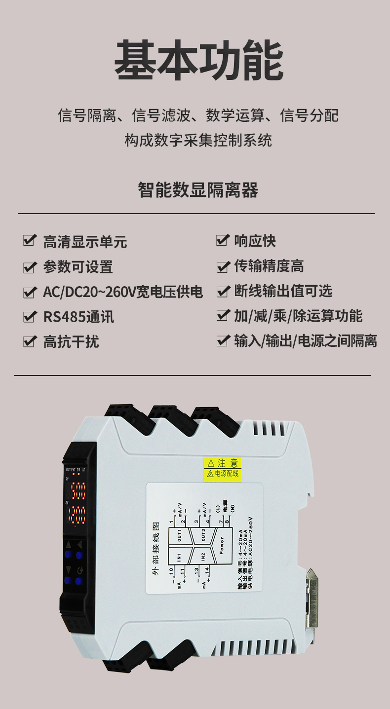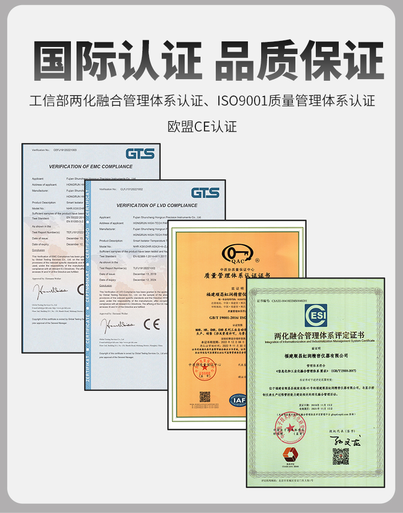 虹潤公司是專業生產隔離器的國家專精特新“小巨人”企業。生產的導軌式智能隔離器 ,具有高清顯示單元,參數可設置,寬電源供電,響應快,帶RS485通訊等特點。產品獲得信號隔離器、一種二端子模塊、無源信號隔離器等3項國家發明專利,主持起草現場設備工具(FDT)接口規范、工業過程測量和控制系統用隔離式安全柵、工業過程測量和控制系統用配電器等3項國家標準,以及通信系統多通道數據采集控制終端規范軍用標準,參與國際5G標準制定,取得智能隔離器等2項相關軟件著作權。產品廣泛應用于電力、石化,冶金、制藥、水處理、機械配套等各種工業現場。