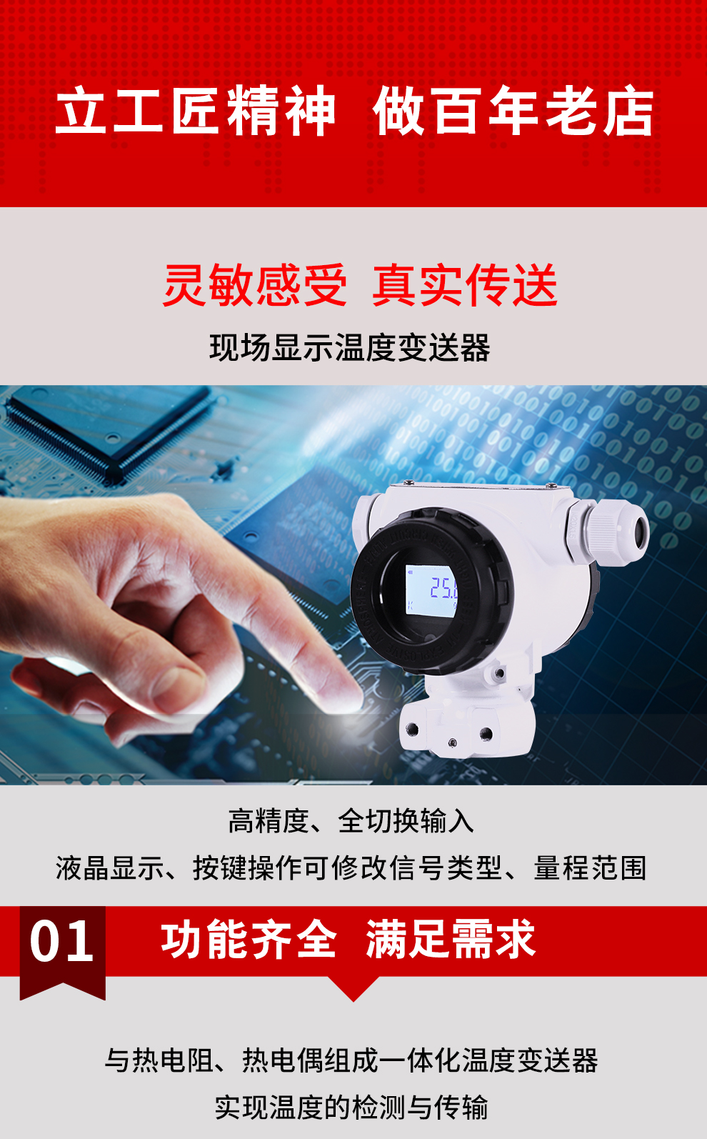 虹潤公司是專業生產溫度變送器的國家專精特新“小巨人”企業。生產的現場顯示溫度變送器,具有可修改輸入信號類型,測量精度高,響應時間快,IP65防護等級等特點。該產品不僅通過德國萊茵 CE 認證與 SIL 功能安全認證,還獲得具備減震抗干擾能力的溫度變送器、信號隔離器、一種二端子模塊、無源信號隔離器等3項國家發明專利。主持起草物聯網智能溫度儀表、現場設備工具(FDT)接口規范、工業過程測量和控制系統用溫度變送器等3項國家標準,以及通信系統多通道數據采集控制終端規范軍用標準。參與國際5G標準制定,取得高精度溫度變送器等3項相關軟件著作權。產品廣泛應用于石油、化工、電力、冶金、制藥、食品、水處理等各種工業領域。