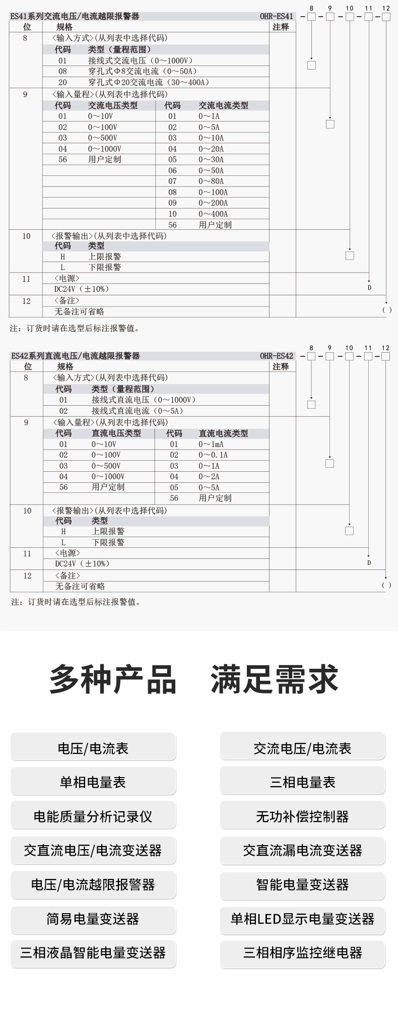 電量儀表與變送器 電壓/電流表 電能質量分析記錄儀 交流電壓電流表 單相電量表 三相綜合電量表 交直流電流電壓變送器 電量變送器 漏電流變送器 電壓電流越限報警器 無功補償控制器 相序監控繼電器 頻率與轉速表 定時器 計數器 計時器 電廠專用轉速表