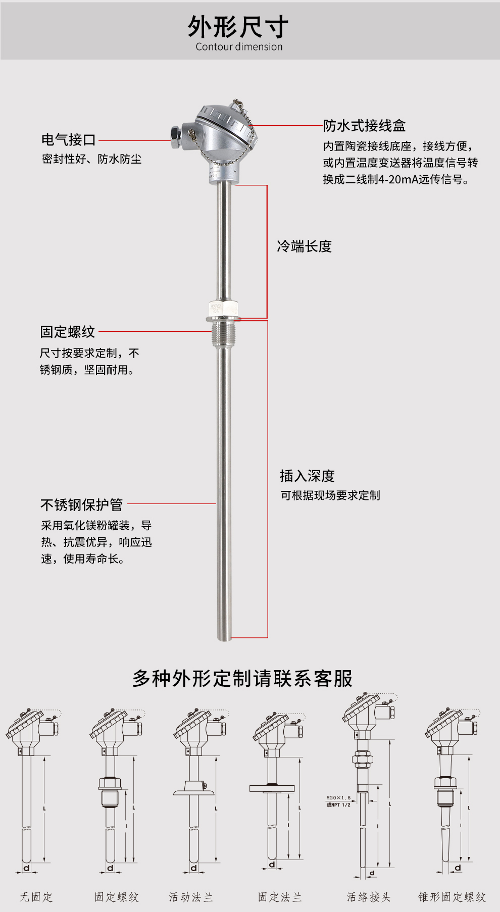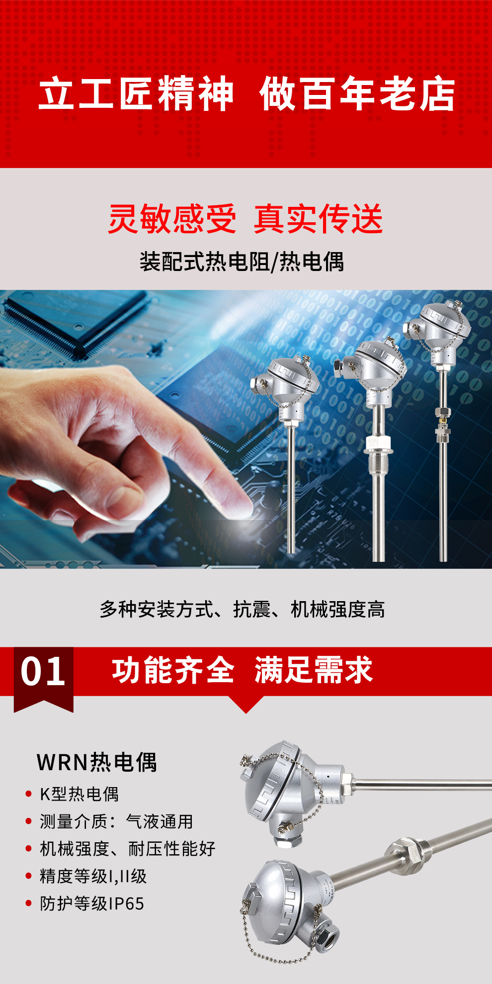 裝配式熱電阻熱電偶作為溫度測量傳感器,通常與溫度變送器、調節器及顯示儀表等配套使用,組成過程控制系統,用以直接測量或控制各種生產過程中流體、蒸汽和氣體介質以及固體表面等溫度。