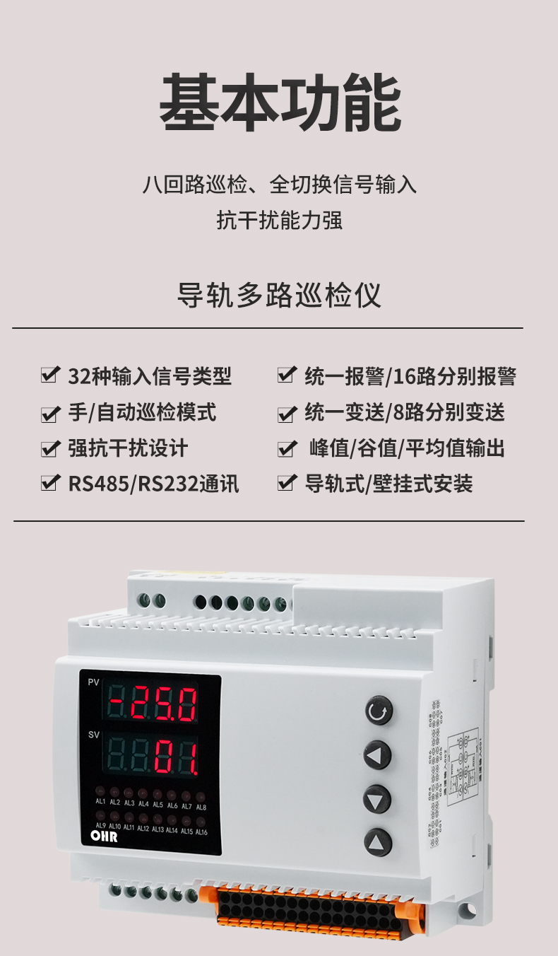 虹潤公司是專業生產多路溫度巡檢儀的國家專精特新“小巨人”企業。生產的導軌多路巡檢儀,具有八回路巡檢采集,全切換信號輸入,高抗電磁干擾,全隔離設計,分別報警/分別變送輸出等特點。產品獲得巡回檢測顯示方法及裝置以及工業模塊的導軌式安裝結構等2項國家發明專利,主持起草工業過程控制系統用模擬輸入兩位或多位輸出儀表、物聯網智能溫度儀表通用技術條件等2項國家標準,以及通信系統多通道數據采集控制終端規范軍用標準,參與國際5G標準制定,取得巡回檢測控制儀等3項相關軟件著作權。產品廣泛應用于石化、冶金、電力、食品、制藥、水處理、實驗室等諸多領域。